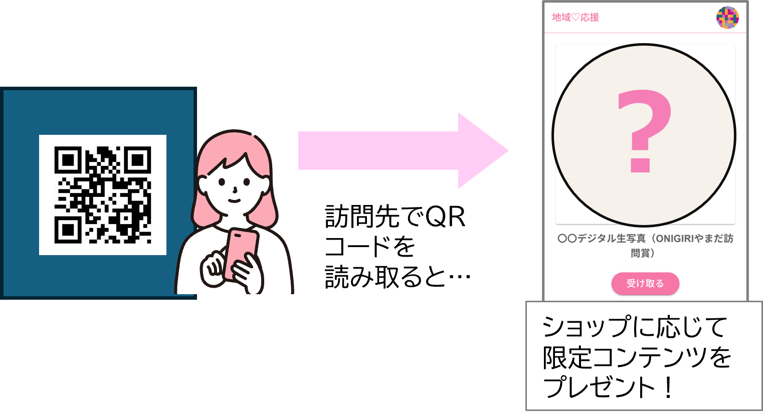 提示されたQRコードを読み取り、限定コンテンツを受け取ります。