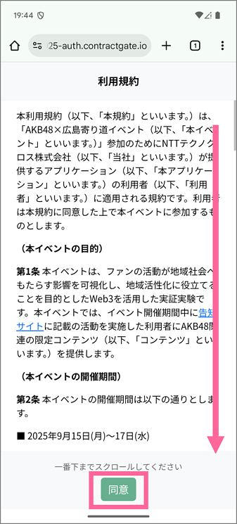 ファンNFT取得サイトへアクセスし、以下手順に従ってファンNFTを取得します。